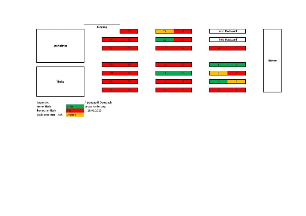 In der Grafik unten könnt ihr sehen welche Tische reservierungsfähig sind und welche noch frei sind.